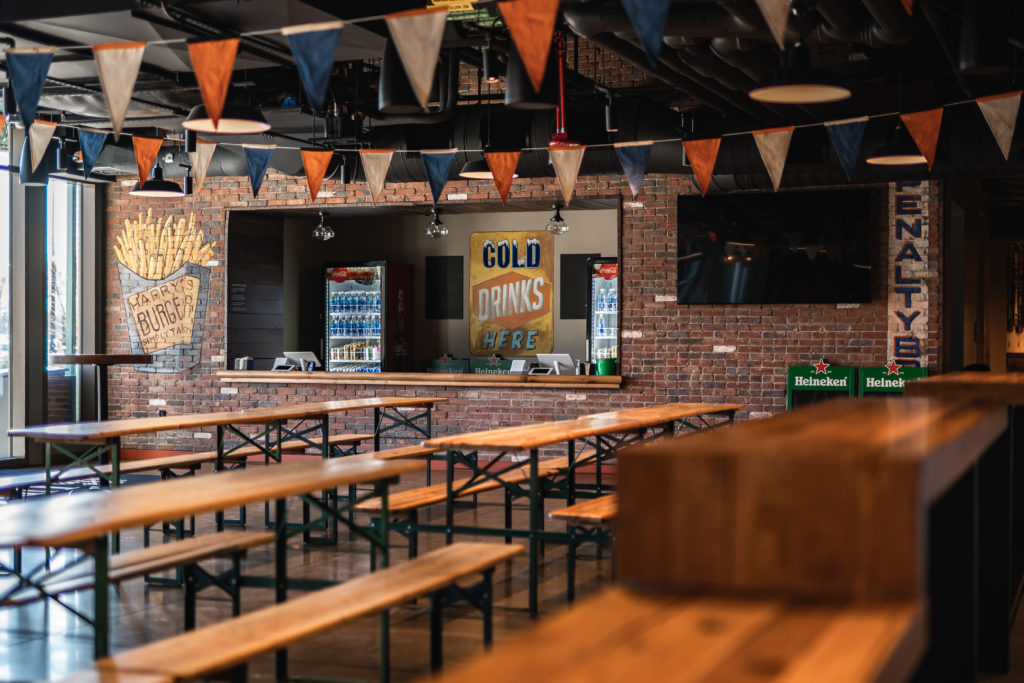 A casual sports restaurant accessible directly from the outside and great for birthday parties and casual occasions.